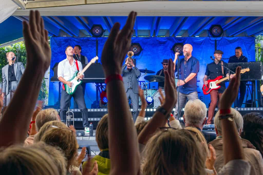 Yleisöä Vesterinen yhtyeineen -konsertissa Taidekeskus Salmelassa kesällä 2024.