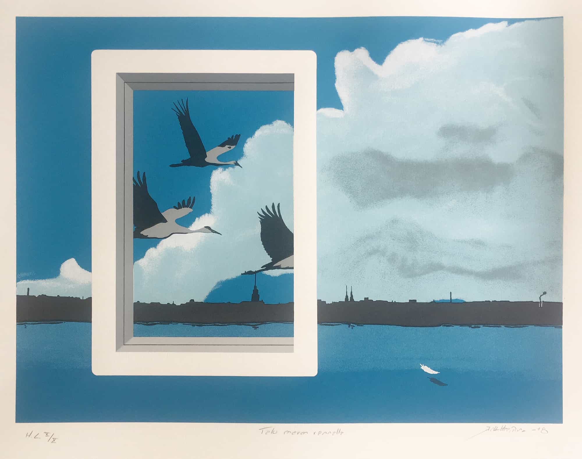 Jakke Haapanen, Talo meren rannalla, litografia, 2018
