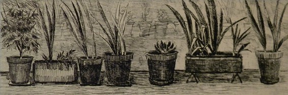 Tuula Lehtinen, Ruukkuja, viivasyövytys/akvatinta, 1987