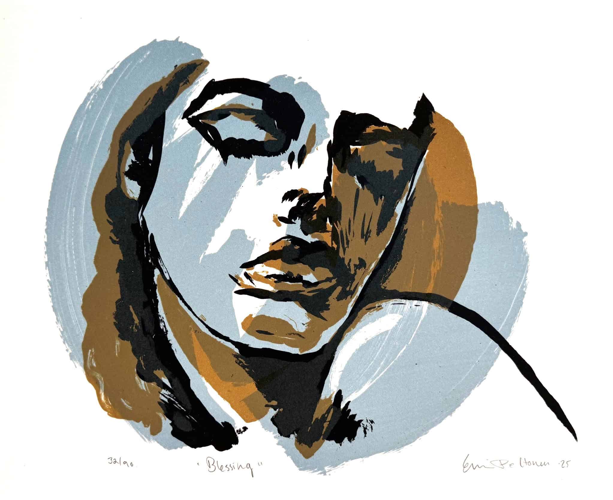 Kuva-ala soikea / orgaaninen, n.21 x 23 cm, vedoksen koko n. 27 x 34 cm