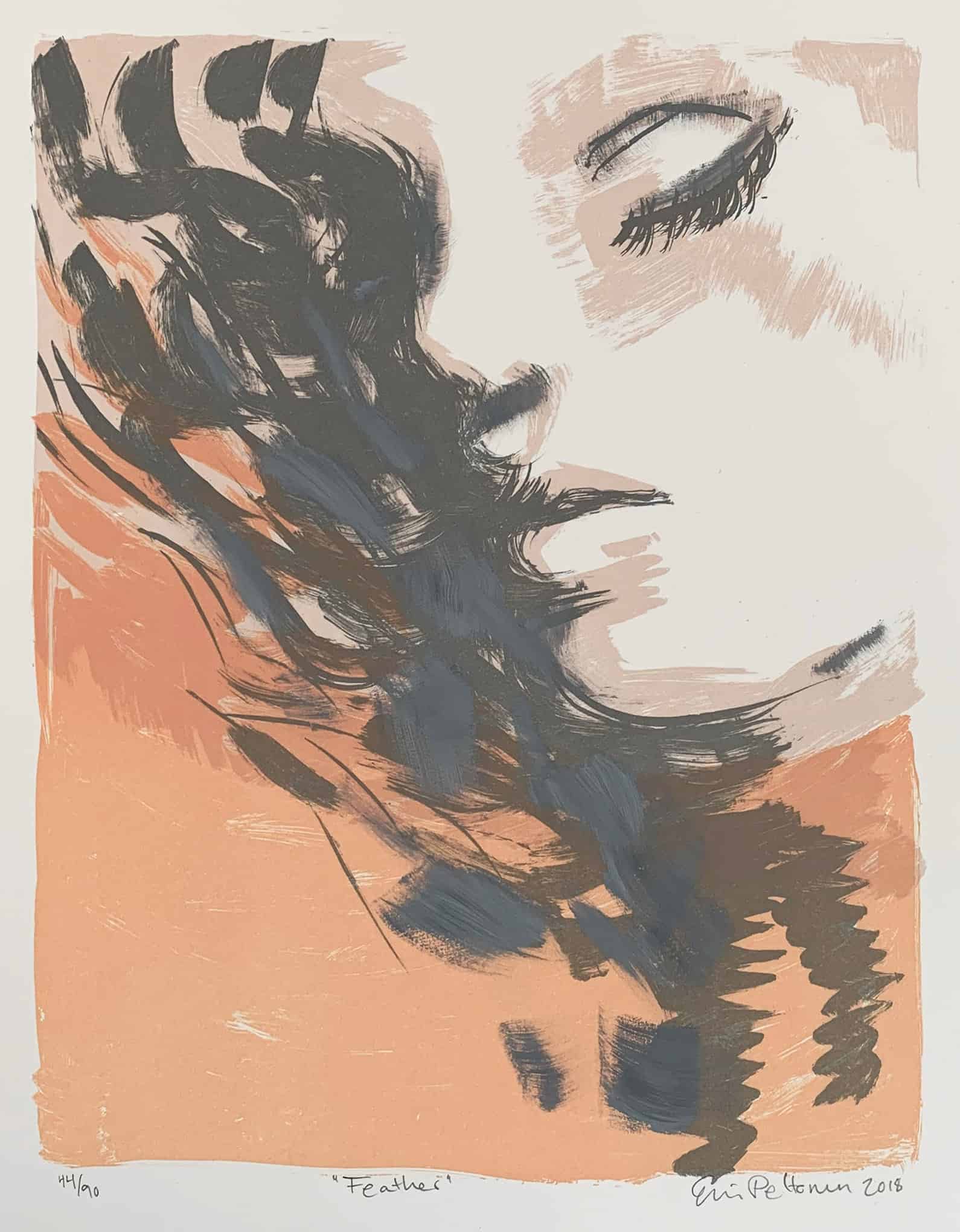 Essi Peltonen, Feather, litografia/akryyli, 2018