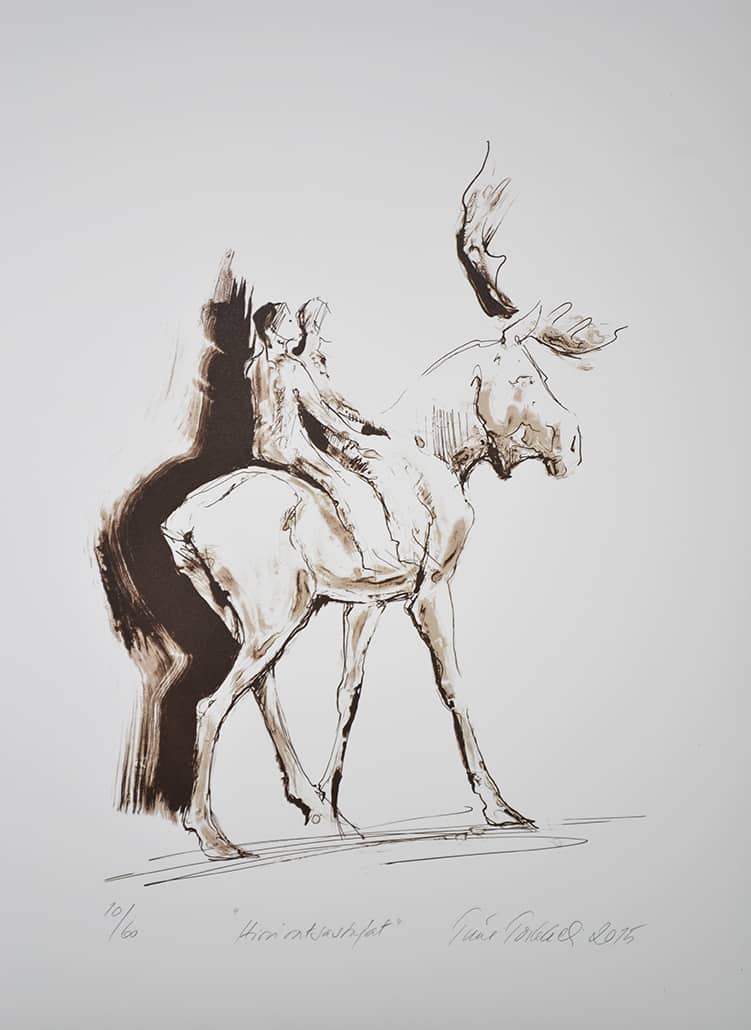 Tiina Torkkeli, Hirviratsastajat, litografia, 2015