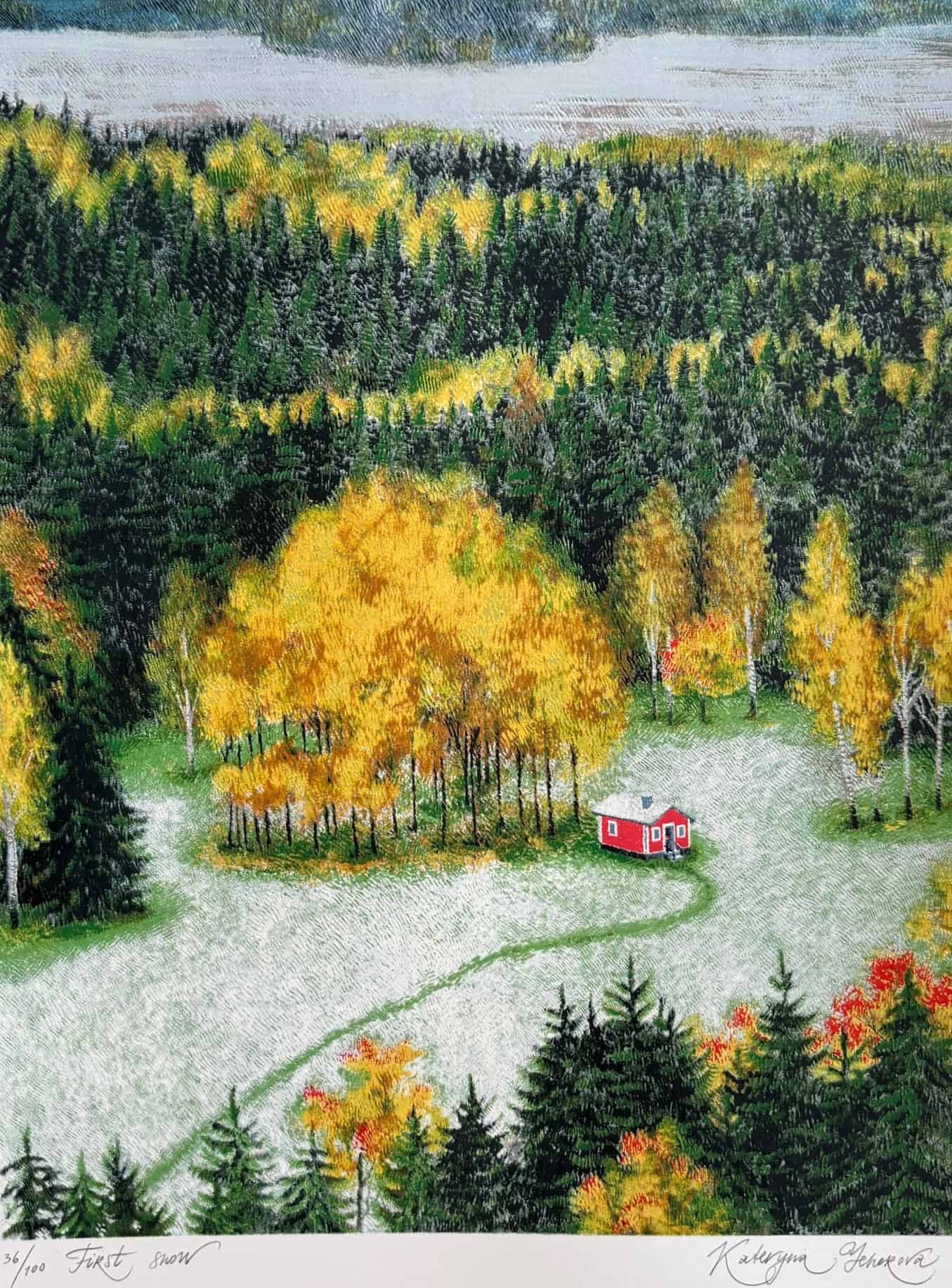 Yehorova, Kateryna: First snow (2024), litografia