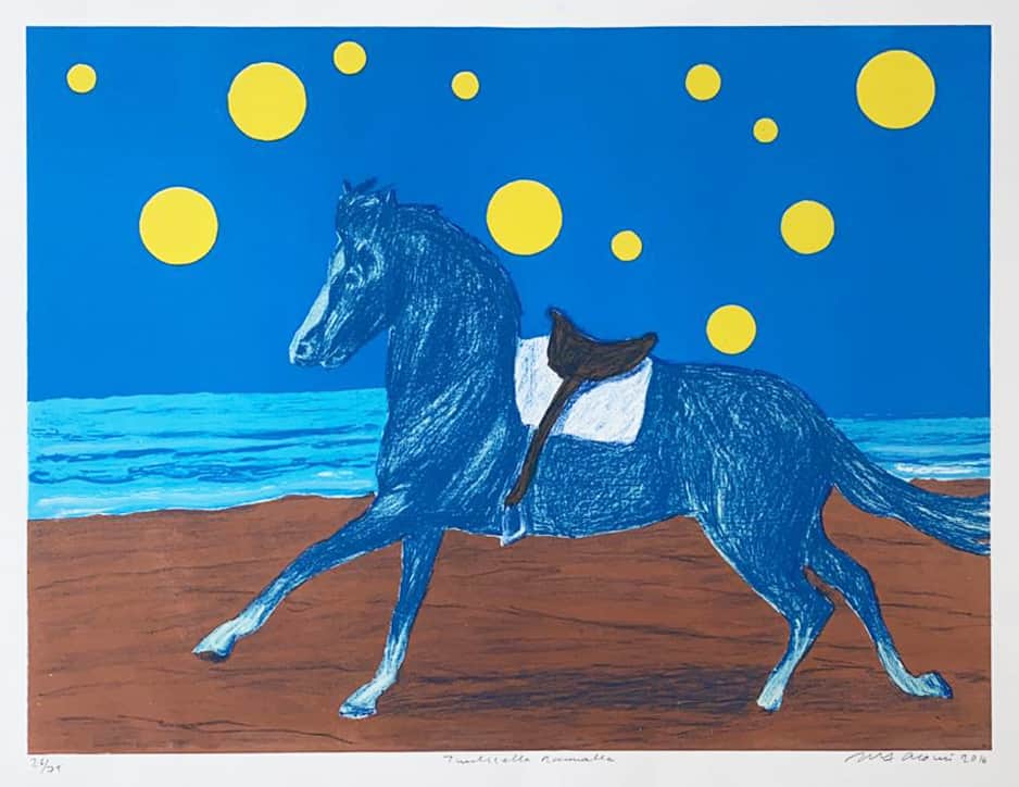 Risto Suomi, Tuulisella rannalla, litografia, 2016.