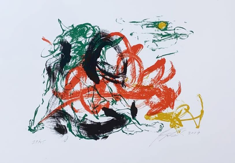Marjatta Tapiola, Minotaurus ja kuu, litografia, 2017