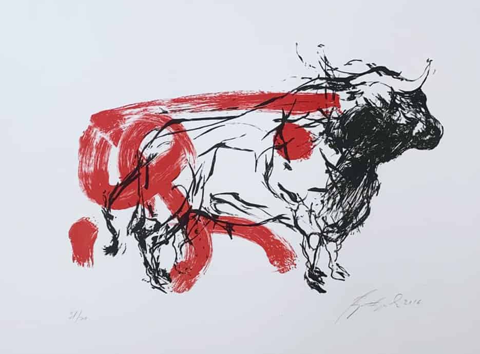 Marjatta Tapiola, Punainen härkä, litografia, 2016