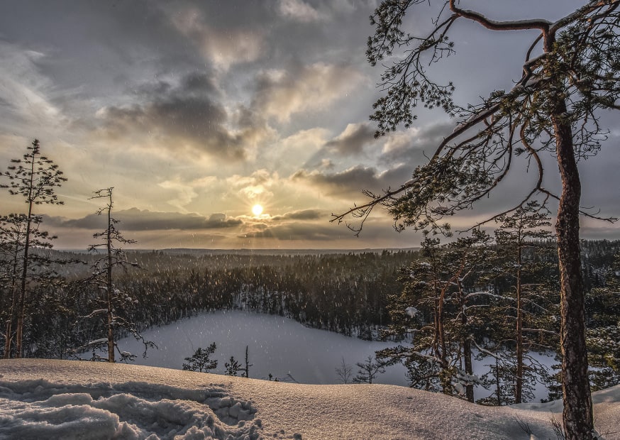 Yksiosainen taidejoulukortti, Ari Korjala: Helmikuinen näkymä Olhavan vuorelta, valokuva
