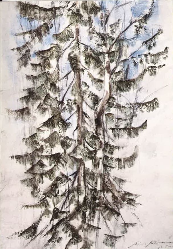 Yksiosainen, taidepostikortti: Aimo Kanerva: Kuuset