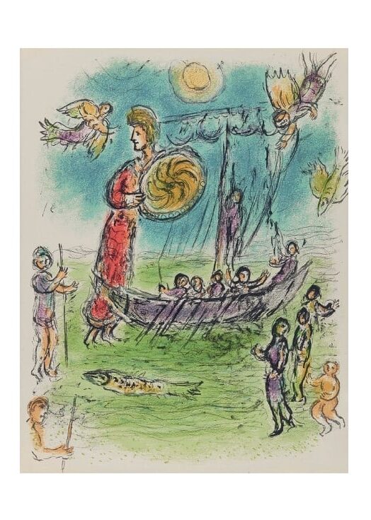 Marc Chagall: Athene ohjaa Telemakhoksen laivaa M. 755