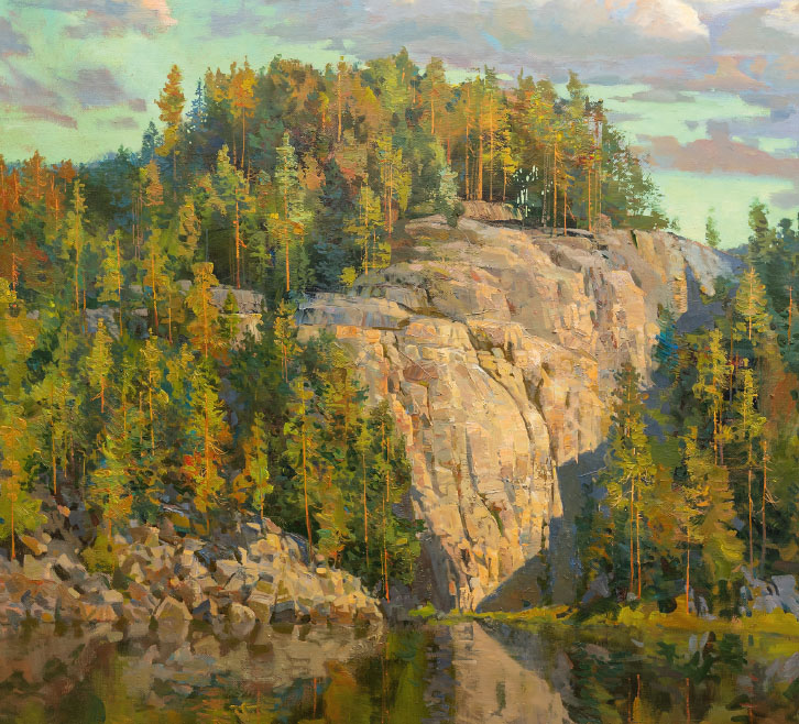 Taidepostikortti (neliö): Kallionposki syysauringossa