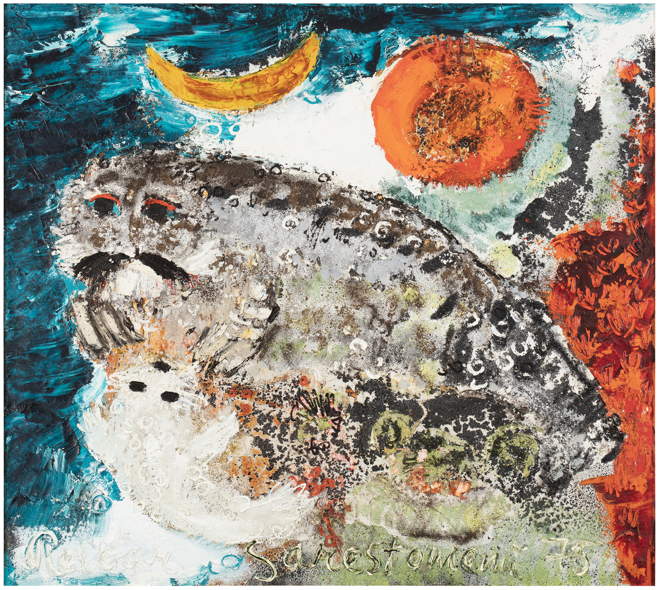 Reidar Särestöniemi: ”Taivaanjaara ja yöaurinko”, öljy ja tempera kankaalle, 1968-76. Kirsi ja Keio Eerikäisen Taidesäätiön kokoelma.