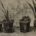 Tuula Lehtinen, Ruukkuja, viivasyövytys/akvatinta, 1987